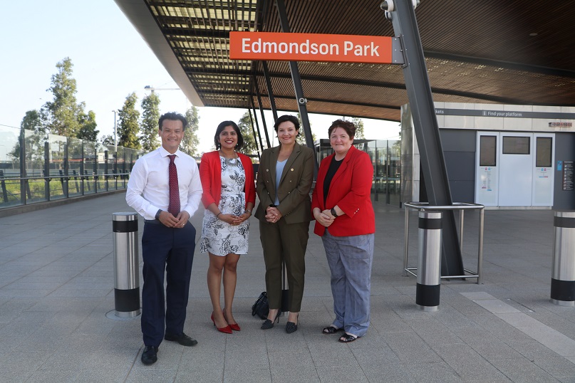 Member for Macquarie Fields Anoulack Chanthivong, Labor candidate for Holsworthy Charishma Kaliyanda and federal MP Anne Stanley joined forces with Ms McKay to remind voters a Daley Labor Government “will put commuters first by further expanding its commitment to car parking at Edmondson Park Station’’.