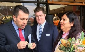 Two federal MPs, one mayor, a council general manager, half a dozen councillors, leading business figures, representatives of major community organisations such as Kids of Macarthur, South West Sydney Academy of Sport, the 24 hour Fight Against Cancer and most of the local media attended this morning’s shindig put on by Alkalizer café owner Shefali and her team.