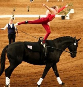 Ginger has to explain to this old journo that vaulting is gymnastics on horseback and combines the skills of both gymnastics and horsemanship.