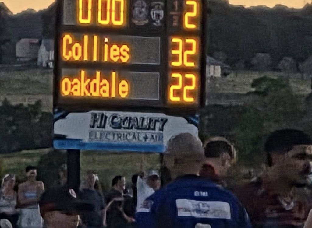 Collies, who led 22-10 at half time, held on to win despite being outscored by brave Oakdale in the second half.