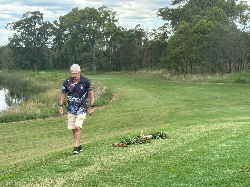 Macquarie Fields Aboriginal elder Uncle Eddie was at the official unveiling of the start of work on The Greens, the $100 million Wests Group Macarthur project at Gledswood Hills.