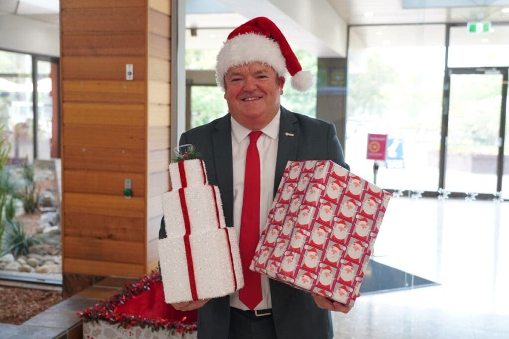 “The festive season is a time of celebration, but it can be a difficult time for some people in our community,’’ says Mayor of Campbelltown Darcy Lound, pictured above getting into the spirit of Christmas.