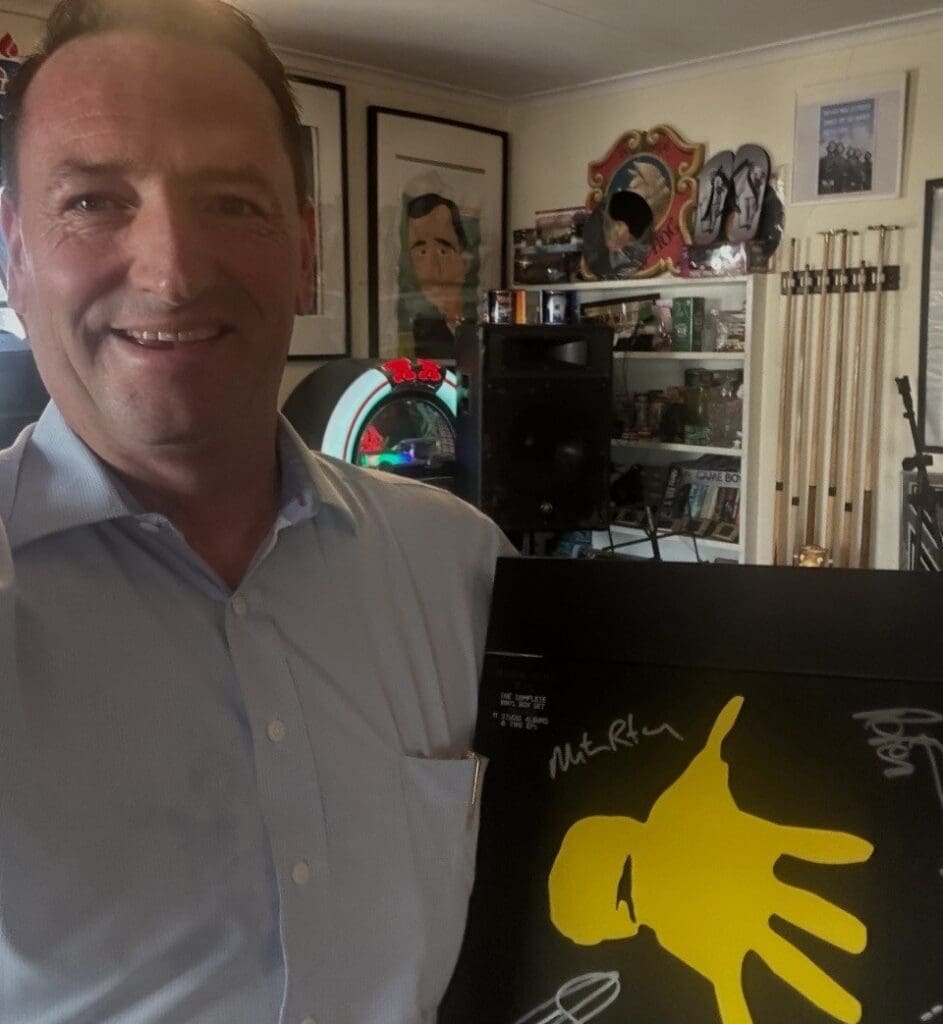 “Many in Campbelltown of a certain age were saddened to hear of the passing of Midnight Oil drummer Rob Hirst,’’ said Duffy, pictured below with an Oils album.