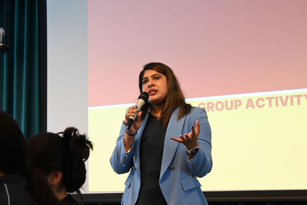Member for Liverpool Charishma Kaliyanda speaking at a Western Sydney University Liverpool campus event.