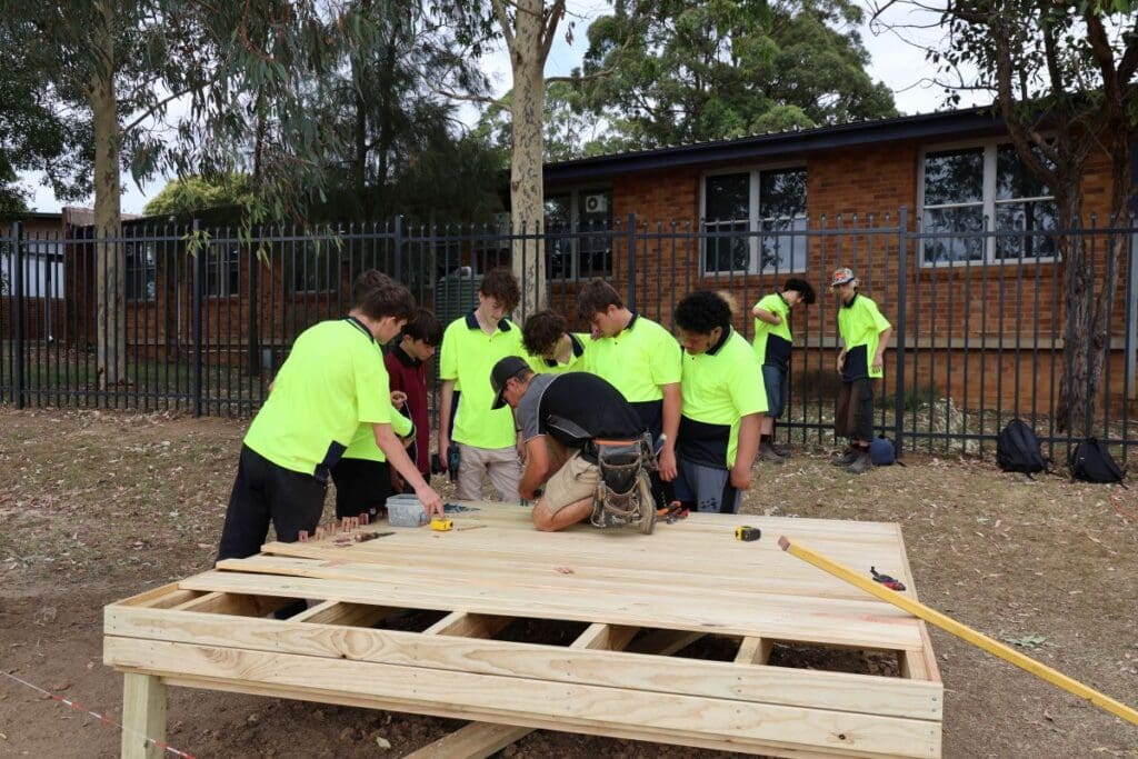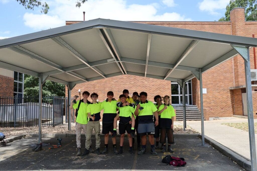 Over the past few weeks, 21 students from Airds High School and Campbelltown Performing Arts High have been gaining hands-on construction experience by building a bike shed and carport at their respective schools.