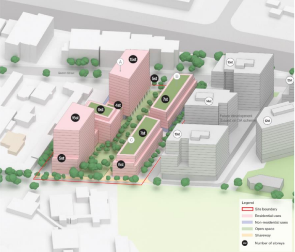 The community submissions objecting to the planning proposal raised issues of overshadowing to the existing apartment building to the west of the site (3-17 Queen Street), increased traffic in the immediate vicinity of the site and loss of existing commercial tenancies.